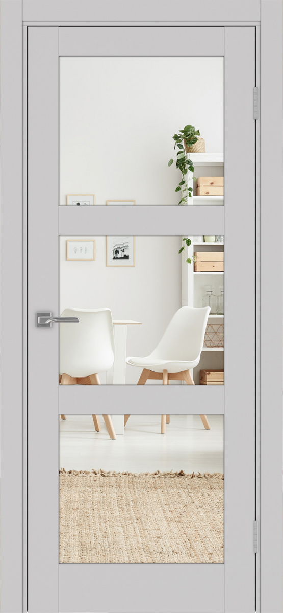 Такой вариант можно считать очень практичным и универсальным, поскольку подходит он к самым разным интерьерам в оформлении помещений. Часто такую дверь ставят в небольших комнатах, чтобы зрительно увеличить пространство.