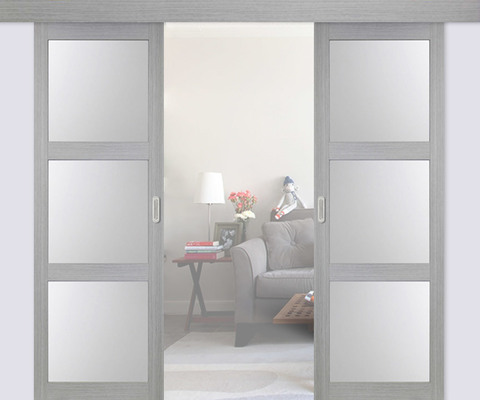 Раздвижная дверь включает в себя одну или две одинаковые створки. Они плавно, поступательно двигаются при открывании параллельно той вертикальной поверхности, на которой они установлены.