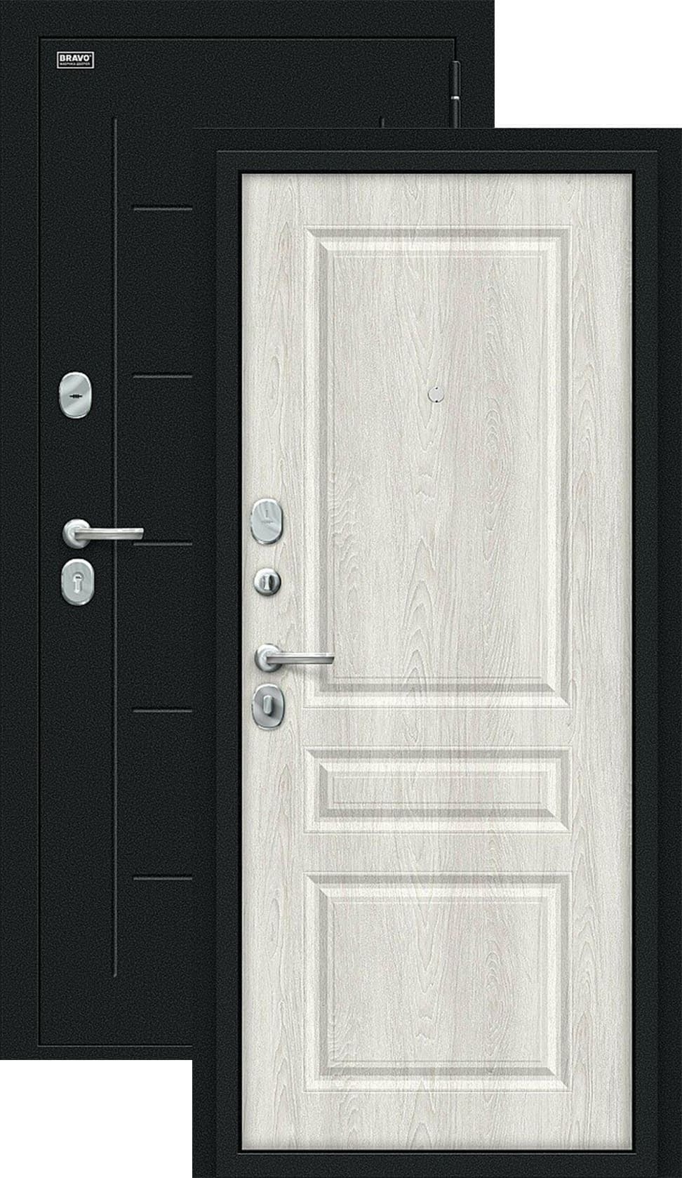 Дверь имеет хорошую прочность из-за толщины металла 1,2 мм. Оснащена двумя надежными замками, минимум один из которых имеет высший класс взломостойкости по ГОСТ 5089-2003 (4 класс). Есть ночная задвижка — дополнительная защита от взлома. Никто не сможет зайти, вскрыв замок, когда вы дома.