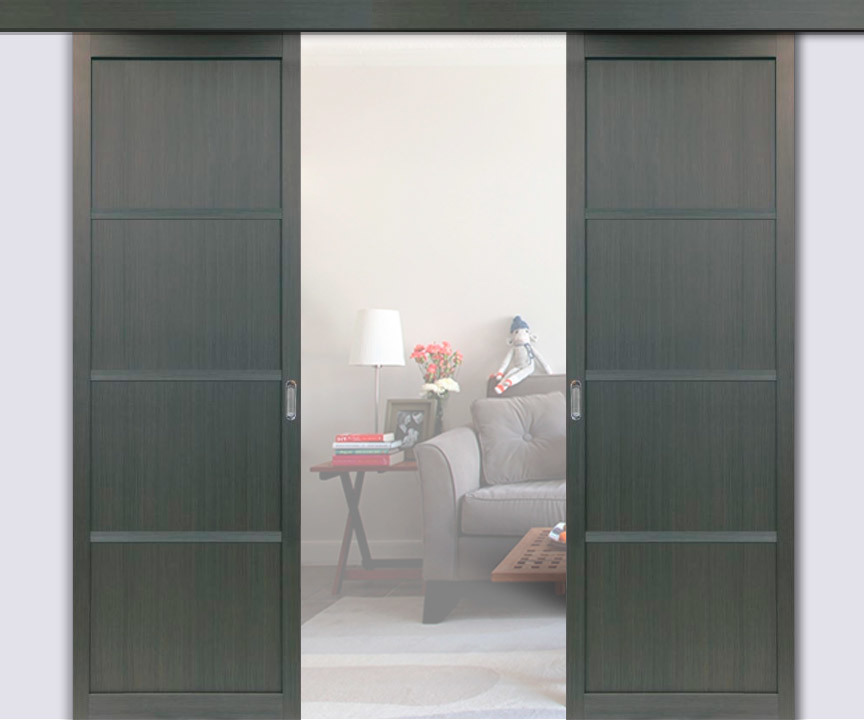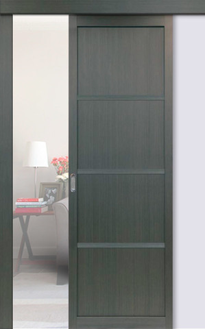 Раздвижная дверь включает в себя одну или две одинаковые створки. Они плавно, поступательно двигаются при открывании параллельно той вертикальной поверхности, на которой они установлены.