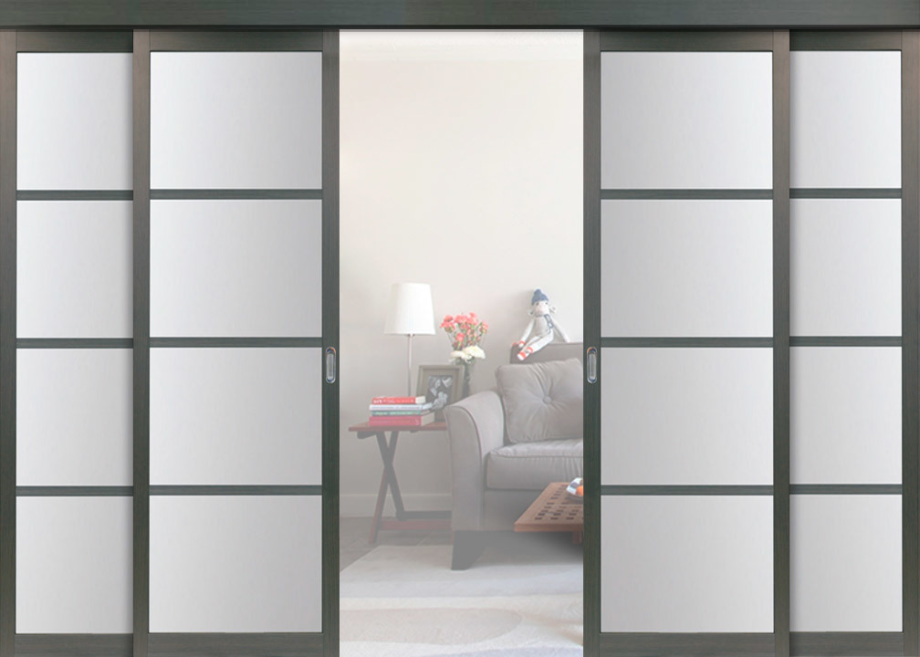 Раздвижная дверь включает в себя одну или две одинаковые створки. Они плавно, поступательно двигаются при открывании параллельно той вертикальной поверхности, на которой они установлены.