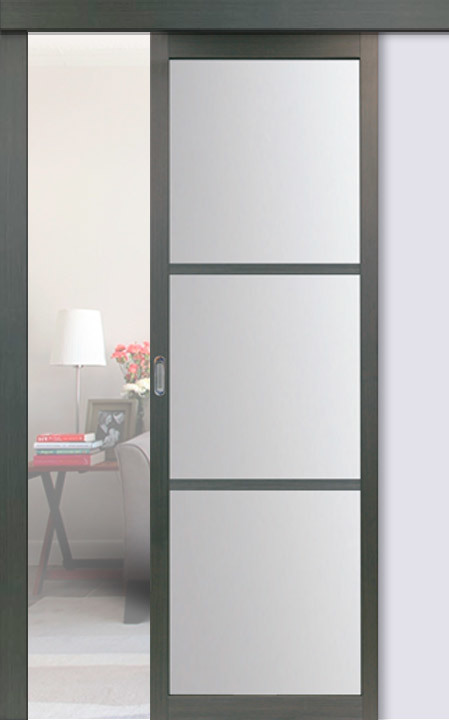 Раздвижная дверь включает в себя одну или две одинаковые створки. Они плавно, поступательно двигаются при открывании параллельно той вертикальной поверхности, на которой они установлены.