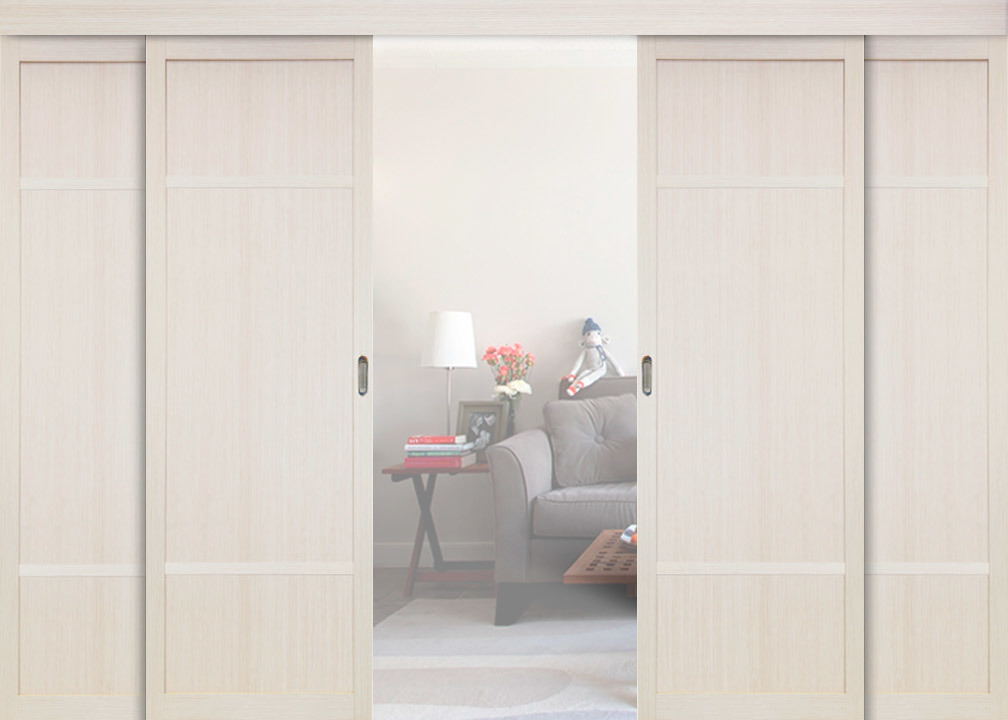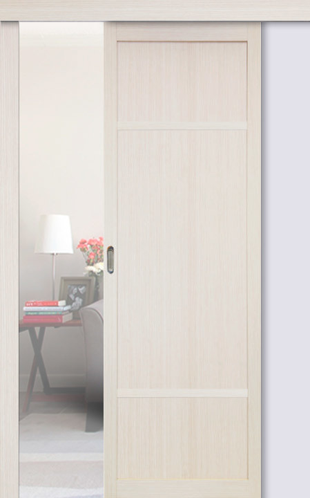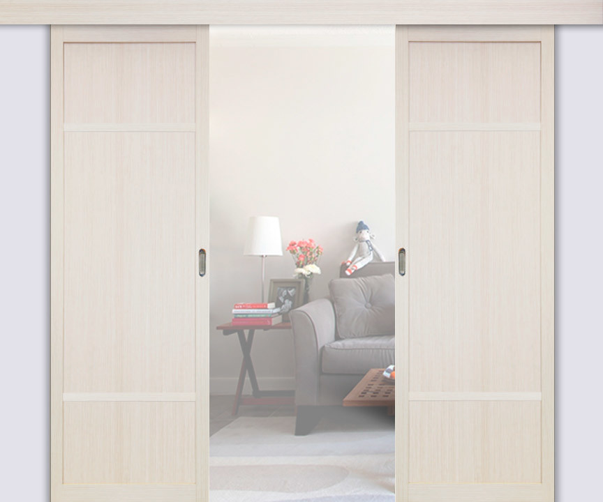 Раздвижная дверь включает в себя одну или две одинаковые створки. Они плавно, поступательно двигаются при открывании параллельно той вертикальной поверхности, на которой они установлены.