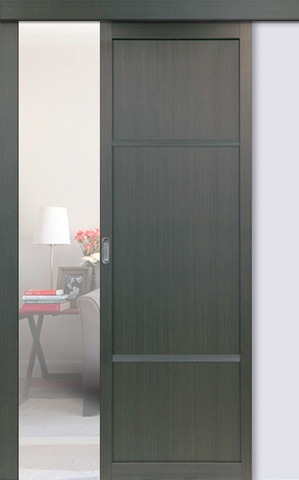 Раздвижная дверь включает в себя одну или две одинаковые створки. Они плавно, поступательно двигаются при открывании параллельно той вертикальной поверхности, на которой они установлены.