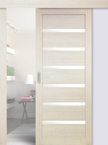 Дверь межкомнатная раздвижная Оптима Порте Турин 507.12, цвет беленый дуб, экошпон, стекло мателюкс