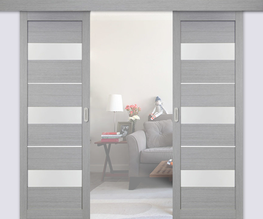 Раздвижная дверь включает в себя одну или две одинаковые створки. Они плавно, поступательно двигаются при открывании параллельно той вертикальной поверхности, на которой они установлены.