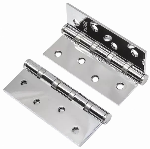 Петли (комплект) врезная универсальная без колпачка Ренц IN100-4BB FH CP (2шт), цвет хром блестящий (гарантия - 12 месяцев)