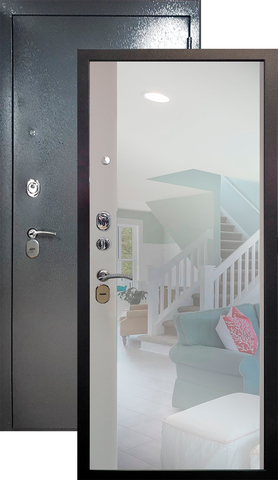 Повышенной надежности российская утепленная дверь с большим зеркалом на внутренней панели. Прекрасно подойдет для установки в квартиру. Солидная модель, которая хорошо защитит и подчеркнет статус.