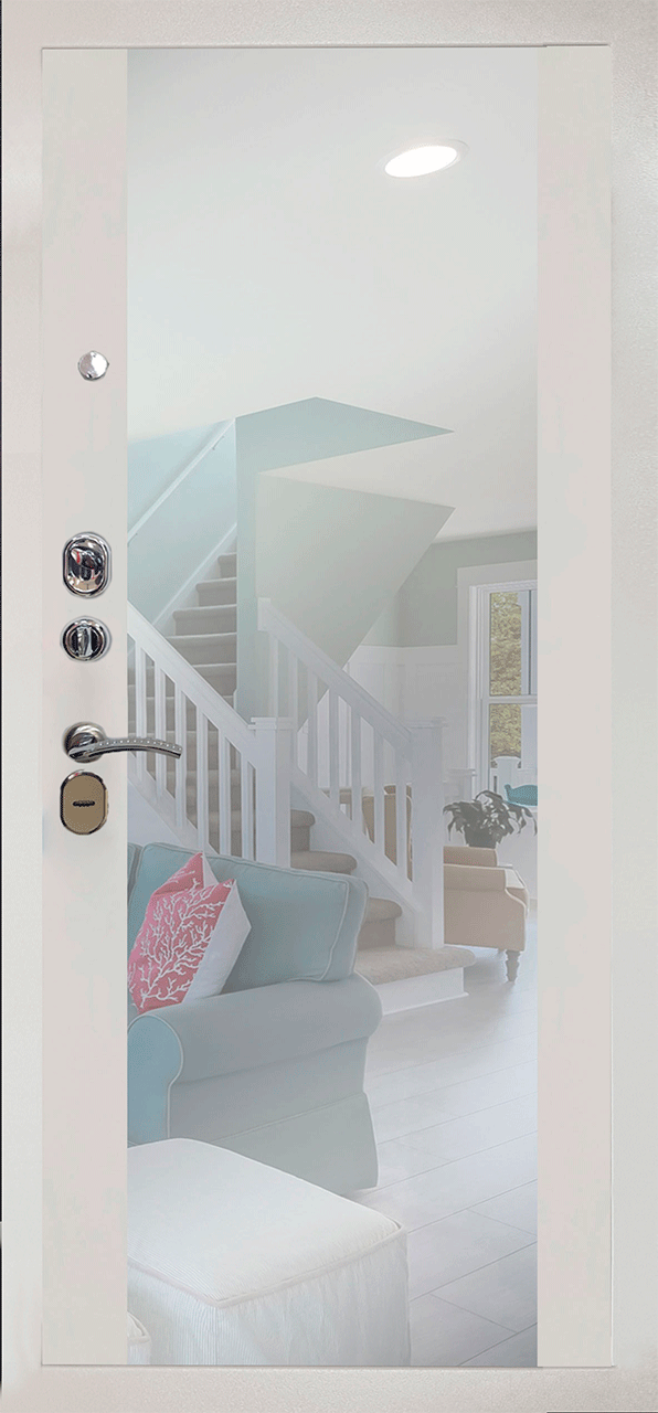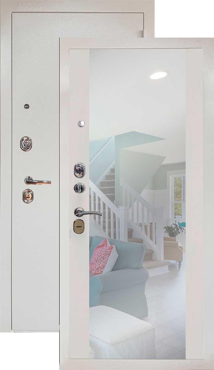 Теплая дверь входная Алекс дорс Вояж зеркало, 2 замка, 1,5 мм металл, (снежно белый+белое дерево)