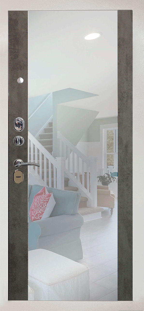 Теплая дверь входная Алекс дорс Вояж зеркало, 2 замка, 1,5 мм металл, (снежно белый+светлый бетон)