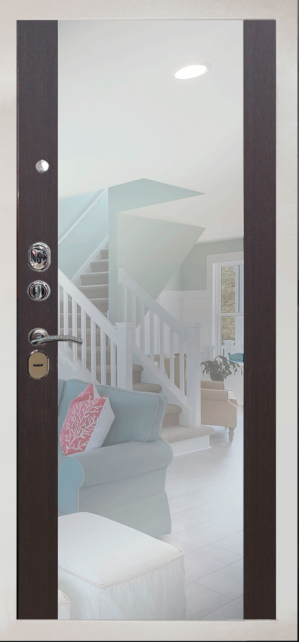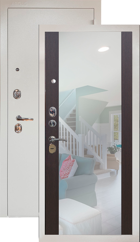 Теплая дверь входная Алекс дорс Вояж зеркало, 2 замка, 1,5 мм металл, (снежно белый+венге)