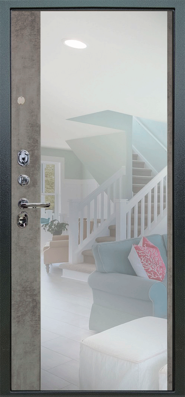 Теплая дверь входная Аргус Люкс 3К 2П Агат/Магнум зеркало, 2 замка, 1,8 мм металл, (темный бетон+светлый бетон)