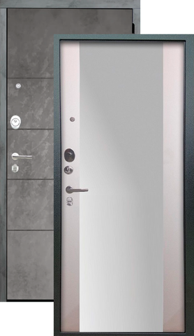 Теплая дверь входная Аргус Люкс 3К 2П Агат/Вояжзеркало, 2 замка, 1,8 мм металл, (темный бетон+белое дерево)