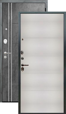 Имеет высокую прочность, благодаря толщине стали 1,8 мм. Оснащена двумя надежными замками, минимум один из которых имеет высший класс взломостойкости по ГОСТ 5089-2003 (4 класс). Есть врезная броненакладка, защищающая цилиндровый замок от высверливания. Она утоплена в дверное полотно, поэтому ее практически невозможно сбить. Есть ночная задвижка — дополнительная защита от взлома. Никто не сможет зайти, вскрыв замок, когда вы дома.