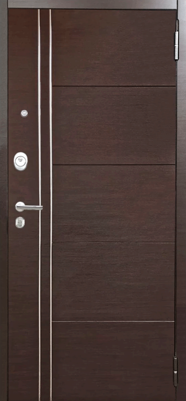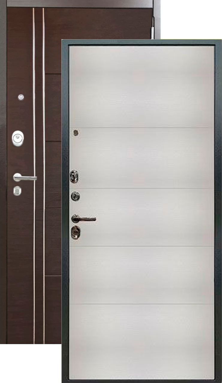 Имеет высокую прочность, благодаря толщине стали 1,8 мм. Оснащена двумя надежными замками, минимум один из которых имеет высший класс взломостойкости по ГОСТ 5089-2003 (4 класс). Есть врезная броненакладка, защищающая цилиндровый замок от высверливания. Она утоплена в дверное полотно, поэтому ее практически невозможно сбить. Есть ночная задвижка — дополнительная защита от взлома. Никто не сможет зайти, вскрыв замок, когда вы дома.
