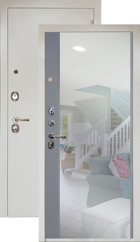 Теплая дверь входная Аргус Люкс 3К Магнум зеркало, 2 замка, 1,8 мм металл, (снежно белый+силк маус)