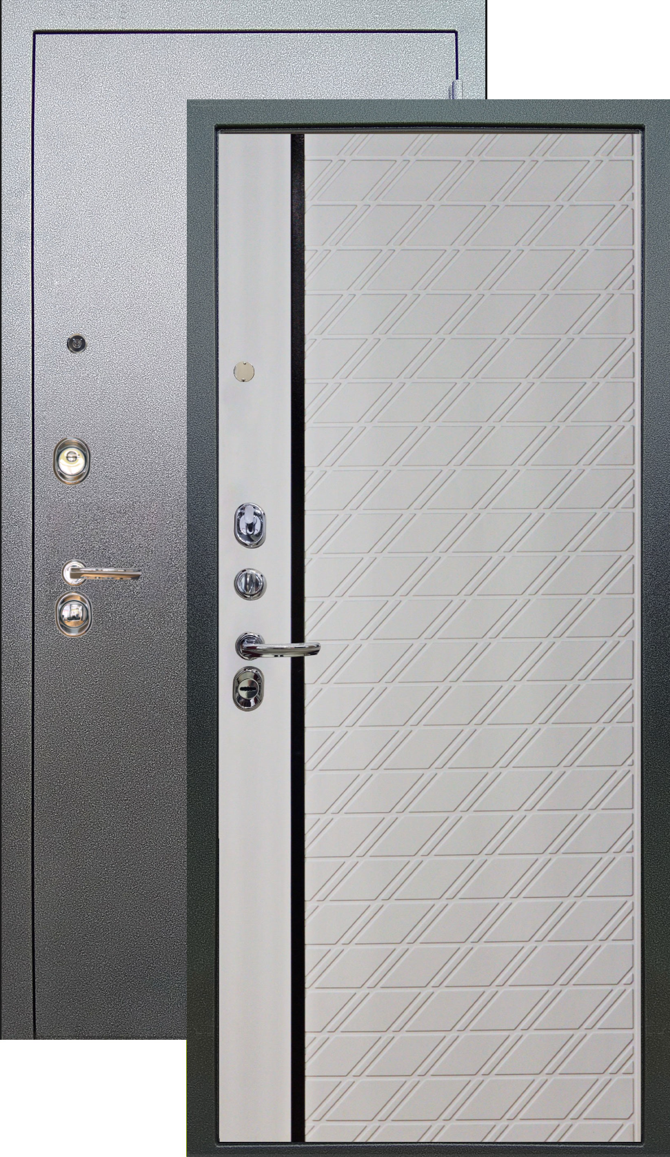 Имеет высокую прочность, благодаря толщине стали 1,8 мм. Оснащена двумя надежными замками, минимум один из которых имеет высший класс взломостойкости по ГОСТ 5089-2003 (4 класс). Есть врезная броненакладка, защищающая цилиндровый замок от высверливания. Она утоплена в дверное полотно, поэтому ее практически невозможно сбить. Есть ночная задвижка — дополнительная защита от взлома. Никто не сможет зайти, вскрыв замок, когда вы дома.