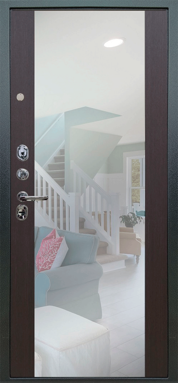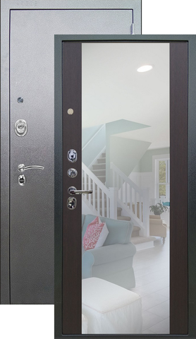 Повышенной надежности российская сейф-дверь с большим зеркалом на внутренней панели. Прекрасно подойдет для установки в квартиру. Солидная модель, которая хорошо защитит и подчеркнет статус.