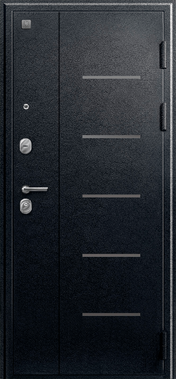 Легкая, не очень прочная дверь, имеет небольшую толщину металла 1 мм. Оснащена двумя надежными замками, минимум один из которых имеет высокий третий класс взломостойкости по ГОСТ 5089-2003 и обладает повышенными охранными свойствами. Есть врезная броненакладка, защищающая цилиндровый замок от высверливания. Она утоплена в дверное полотно, поэтому ее практически невозможно сбить. Есть ночная задвижка — дополнительная защита от взлома. Никто не сможет зайти, вскрыв замок, когда вы дома.