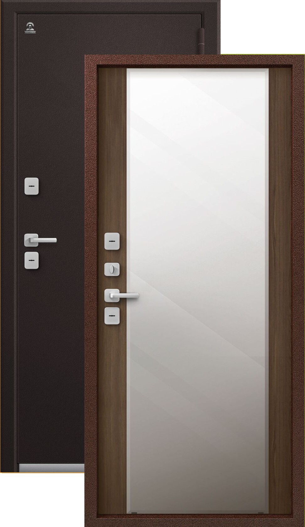 Термодверь входная Центурион Т-6/1 (2026) зеркало, 2 замка, 1,4 мм металл, (шоколад букле+миндаль)