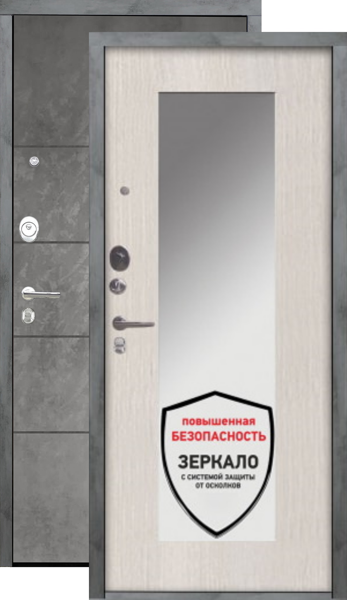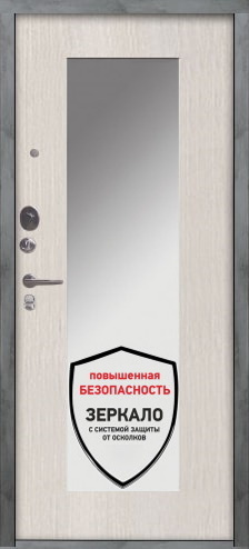 Повышенной надежности российская сейф-дверь с большим зеркалом на внутренней панели. Прекрасно подойдет для установки в квартиру. Солидная модель, которая хорошо защитит и подчеркнет статус.