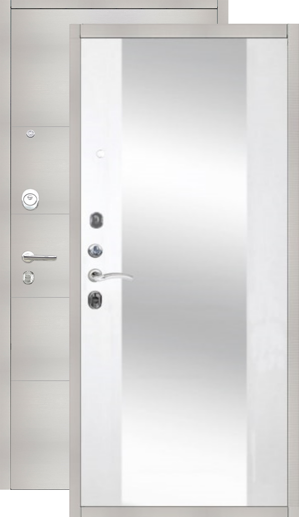 Повышенной надежности российская сейф-дверь с большим зеркалом на внутренней панели. Прекрасно подойдет для установки в квартиру. Солидная модель, которая хорошо защитит и подчеркнет статус.