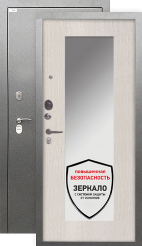 Повышенной надежности российская сейф-дверь с большим зеркалом на внутренней панели. Прекрасно подойдет для установки в квартиру. Солидная модель, которая хорошо защитит и подчеркнет статус.
