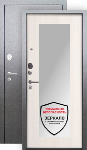 Повышенной надежности российская сейф-дверь с большим зеркалом на внутренней панели. Прекрасно подойдет для установки в квартиру. Солидная модель, которая хорошо защитит и подчеркнет статус.